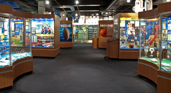 For an up close look at UCLA’s team trophies and other memorabilia, visit the UCLA Athletics Hall of Fame. See an exact replica of legendary UCLA Coach John Wooden’s Den, a place in his Encino, CA condominium where he spent his post coaching years doing his daily work. See video highlights of great moments in UCLA sports history, learn about UCLA’s Olympic heritage – and much more.