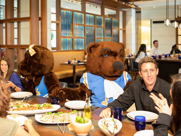 Beloved UCLA mascots Joe Bruin and Josephine recently stayed at the UCLA Luskin Conference Center and have nothing but great things to “say” about their time there! We were able to tag along with them to see them in action, which included a delightful meal at Plateia, our on-site restaurant, and practicing hoops at Pauley Pavilion, just a short walk away.
